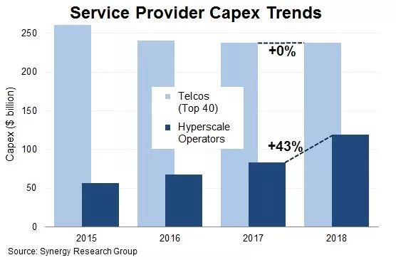 Synergy Research Group首席分析師John Dinsdale表示,“超大規(guī)模云服務(wù)提供商正在迅速成為IT資本支出之王。 受云服務(wù)、電子商務(wù)、社交媒體和在線廣告擴(kuò)張的推動(dòng),超大規(guī)模云服務(wù)提供商的收入平均每年增長20%。值得注意的是,領(lǐng)先企業(yè)將越來越多的收入投入到新一輪的資本支出。與此形成鮮明對比的是,電信公司的收入和資本支出都沒有增長,我們認(rèn)為這些趨勢不會(huì)很快改變?!?