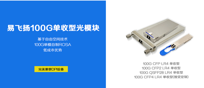 產(chǎn)品是核心。豐富的產(chǎn)品線,可滿足廠商不同方位需求,最大優(yōu)勢能降低組合成本。易飛揚全力打造了一條豐富的100G QSFP28 LR4/CFP LR4/CFP2 LR4系列單收型光模塊產(chǎn)品線,極大地滿足了客戶對端口高帶寬的要求。同時,通過技術(shù)創(chuàng)新,采用自制ROSA器件,實現(xiàn)了產(chǎn)品的低成本從而帶給DPI廠商切實的好處。其中100G CFP4 LR4單收還可接受定制化需求,滿足產(chǎn)品選擇多樣性。