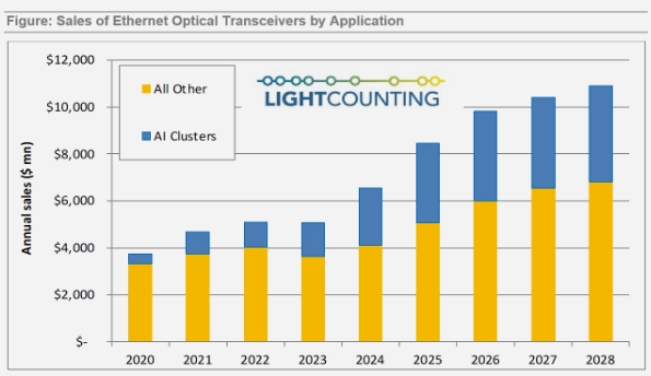 爭(zhēng)奪人工智能(AI)霸主地位的競(jìng)賽正在如火如荼地進(jìn)行。自2023年7月以來(lái),LightCounting(LC)每3個(gè)月就會(huì)上調(diào)對(duì)以太網(wǎng)光模塊銷(xiāo)售的預(yù)測(cè);在本報(bào)告中,LC再次這樣做。