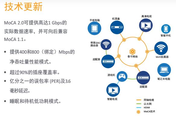 制定MoCA Access規(guī)范是MoCA聯(lián)盟的戰(zhàn)略方向,MoCA技術(shù)中固有的性能和可靠性將能夠成功地被應(yīng)用在看重性能和可靠性的應(yīng)用中,并為其帶來技術(shù)優(yōu)勢。全球運營商需要在家庭中實現(xiàn)1Gbps的凈吞吐量并以此作為整體網(wǎng)絡(luò)設(shè)計的最低要求。如今,MoCA2.0已經(jīng)能夠幫助運營商滿足該要求。