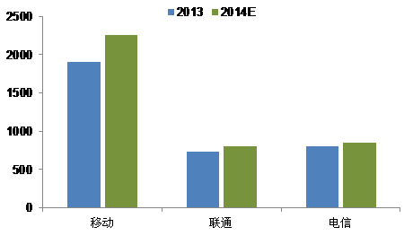 三大運(yùn)營(yíng)商資本開(kāi)支增幅各不相同,其中中國(guó)移動(dòng)增幅最大,投資力度最強(qiáng),預(yù)計(jì)其2014年將資本開(kāi)支提升到2252億元,主要投向?yàn)闊o(wú)線網(wǎng)絡(luò)(44%)和傳輸網(wǎng)(28%);而中國(guó)聯(lián)通資本開(kāi)支預(yù)算的增長(zhǎng)幅度約為8.9%,主要投向?yàn)橐苿?dòng)網(wǎng)絡(luò)、傳輸網(wǎng)和寬帶網(wǎng)絡(luò)的建設(shè);電信資本開(kāi)支預(yù)算與2013年基本持平,主要投向?yàn)橐苿?dòng)網(wǎng)絡(luò)(52.68%)和寬帶網(wǎng)絡(luò)建設(shè),但電信明確表示在FDD-LTE牌照發(fā)布后將追加200億的投資。