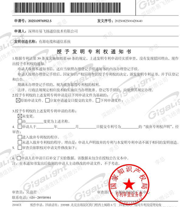 ICC訊 2025年9月15日,易飛揚(GIGALIGHT)于近日獲得一項專用于AI&DC互連系統(tǒng)的關(guān)鍵發(fā)明專利。這項名為“有源電纜和通信系統(tǒng)”的專利,確切的商業(yè)名稱為:混合技術(shù)架構(gòu)等效有源電纜(Hybrid ACC+)。該專利結(jié)合了現(xiàn)今世面上PCC/ACC和 AEC技術(shù)的優(yōu)點,進行了基于系統(tǒng)互連級別的重新設(shè)計。設(shè)計目標為在AEC 線纜基礎(chǔ)上降低功耗和時延以及成本各50%,傳輸距離可以接近AEC線纜最佳值80%的水平。實際運行還需要檢驗。