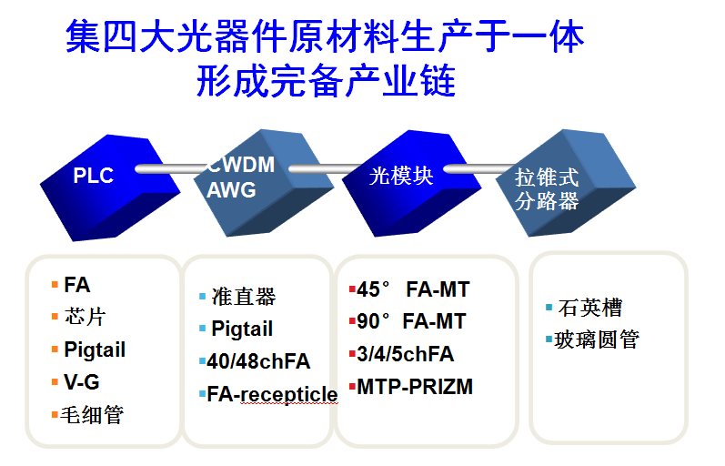 光通匯聯(lián)成立于2015年,是一家專業(yè)從事研發(fā)、生產(chǎn)和銷售光器件基礎(chǔ)材料的高科技企業(yè)。2017年,光通匯聯(lián)在常規(guī)FA、單雙纖基礎(chǔ)上擴(kuò)大產(chǎn)品線,增收石英槽、毛細(xì)管、玻璃圓管業(yè)務(wù),開拓有源FA市場(chǎng)。目前,其主要經(jīng)營(yíng)范圍涉及石英基板、光纖毛細(xì)管、V型槽、PIGTAIL等微光學(xué)產(chǎn)品及光纖陣列、芯片、準(zhǔn)直器等集成光學(xué)產(chǎn)品相關(guān)領(lǐng)域。