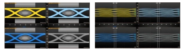 DCA6201測試光眼圖(左NRZ, 右PAM4)