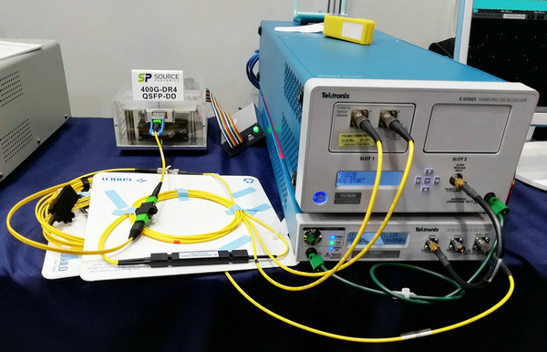 本次光博會,泰克科技亮點產(chǎn)品是最新400G PAM4測試方案,該方案采用全新一代光采樣示波器TSO820和CDR時鐘恢復(fù)模塊TCR801,可以高效提升400G PAM4模塊生產(chǎn)測試能力與效率。據(jù)泰克科技專家周英航介紹,公司攜手索爾思光電共同進行最新400G PAM4測試方案的實時演示,整套演示基于400G DR4光模塊,可實現(xiàn)四路通道信號輸出,單通道可到53.125GBaud PAM4信號和100G比特率。