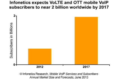 OTT移動(dòng)VoIP和VoLTE服務(wù),到2017年有望達(dá)到160億美元。