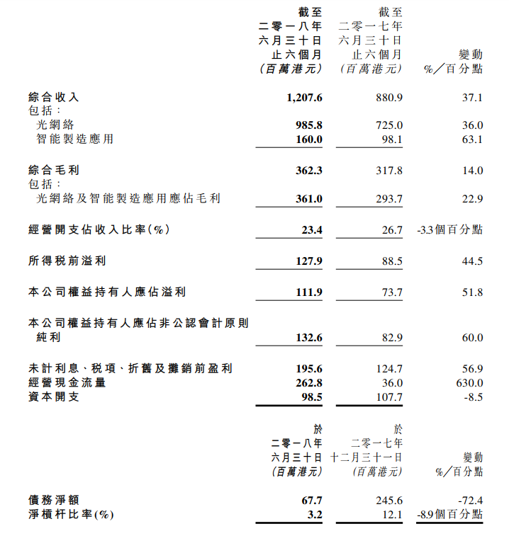 主要原因:數(shù)據(jù)中心互連市場(chǎng)發(fā)展強(qiáng)勁,繼續(xù)帶動(dòng)增長(zhǎng);在原有客戶(hù)和數(shù)個(gè)新客戶(hù)方面取得更大的業(yè)務(wù)份額;有源光元器件銷(xiāo)售收入大幅增長(zhǎng)75%至約1億港元;及客戶(hù)現(xiàn)正為5G網(wǎng)絡(luò)部署產(chǎn)品進(jìn)行認(rèn)證。由于快將推出的5G網(wǎng)絡(luò)部署計(jì)劃將會(huì)進(jìn)一步推高光網(wǎng)絡(luò)產(chǎn)品的需求以及推動(dòng)有關(guān)產(chǎn)品的升級(jí)周期,顯示不久的將來(lái)將會(huì)有新增收入來(lái)源。