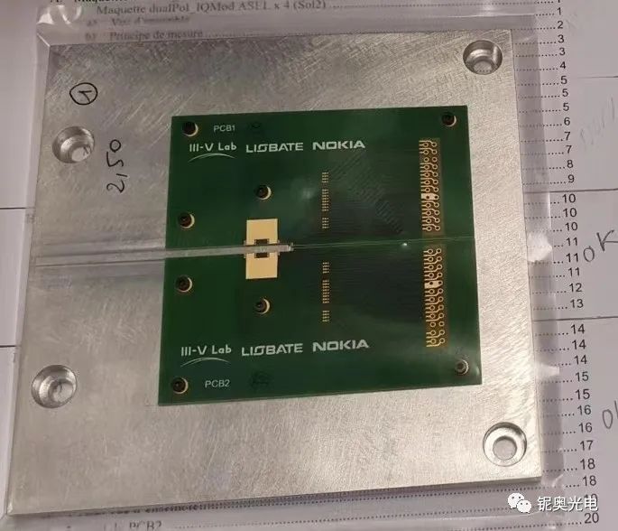 圖1 鈮奧光電和中山大學研制的鈮酸鋰薄膜IQ調制器