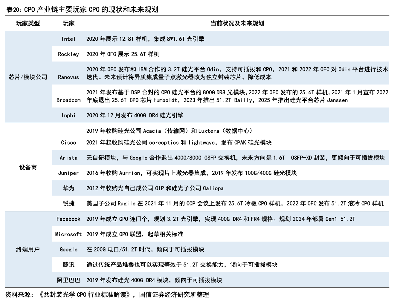 國(guó)盛證券研報(bào)進(jìn)一步表示,目前來看,現(xiàn)有技術(shù)方案在能耗和成本方面均可能無法滿足(速率升級(jí)或堆疊的方式),同時(shí),近期ChatGPT加速AI的進(jìn)程使得相應(yīng)要求來得更快,CPO有望成為AI高算力下高能效比方案,或在未來2-3年有望快速放量。