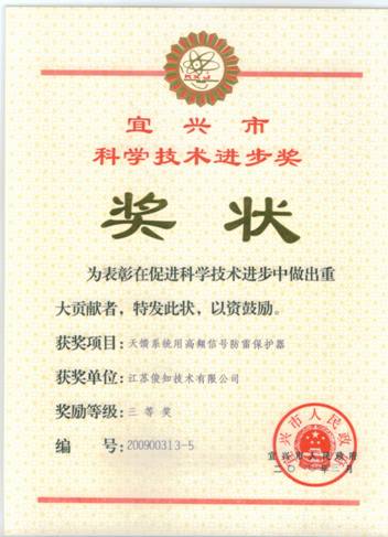 宜興市科學(xué)技術(shù)進步獎”三等獎。同時該項目已于2008年榮獲“江蘇省高新技術(shù)產(chǎn)品”稱號。