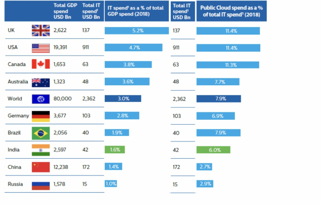 * 但是,云計算僅占國家IT支出的2.7%,其IT支出僅占GDP的1.4%