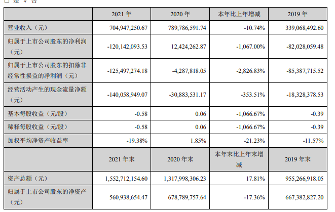 ICC訊 深圳市科信通信技術(shù)股份有限公司(以下簡(jiǎn)稱“科信技術(shù)”或“公司”)發(fā)布2021 年年度報(bào)告稱:報(bào)告期內(nèi),公司實(shí)現(xiàn)營(yíng)業(yè)收入 70,494.73萬(wàn)元,同比下降10.74%;實(shí)現(xiàn)歸屬于上市公司股東的凈利潤(rùn)-12,014.21萬(wàn)元,同比下降1067.00%;扣除非經(jīng)常性損益后公司的凈利潤(rùn)為-12,549.73萬(wàn)元,同比下降2826.83%