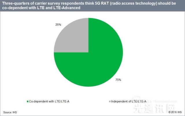 四分之三的受訪者表示5G應該與LTE以及LTE-A互相依賴。