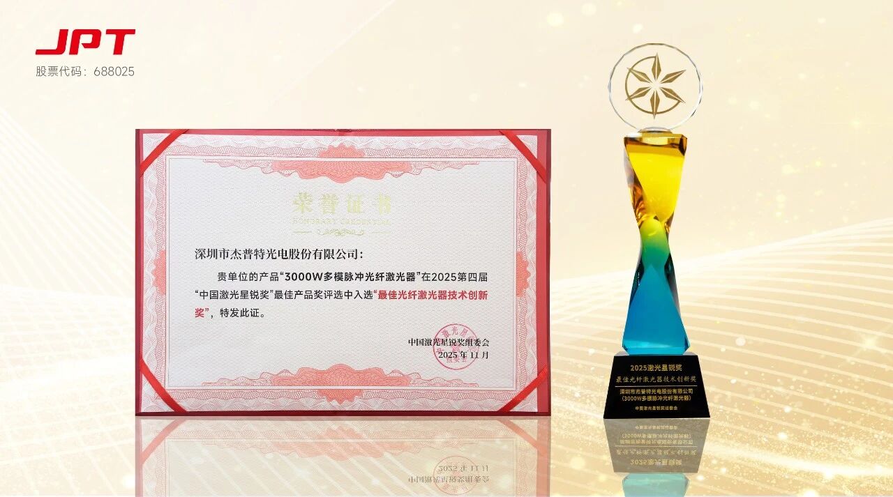 ICC訊 11月28日,在武漢光谷舉辦的SRA2025第四屆中國激光星銳獎(jiǎng)?lì)C獎(jiǎng)典禮上,杰普特憑借自主研發(fā)的3000W多模脈沖光纖激光器,成功摘得 “最佳光纖激光器技術(shù)創(chuàng)新獎(jiǎng)”。