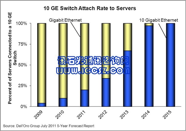 服務(wù)器、SFP直連和10G Base-T等連接方式。我們還預(yù)計,到2014年,中小型企業(yè)將升級到萬兆