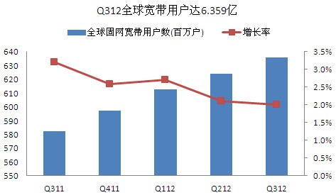 【訊石光通訊咨詢網(wǎng)】截止到2012年9月底,全球寬帶用戶有6.359億,環(huán)比增長2%,同比增長12.3%。