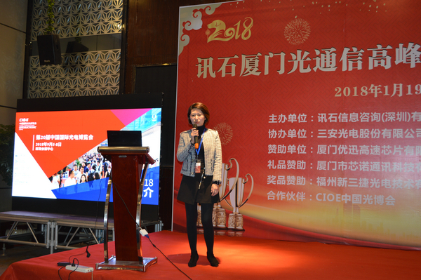 Iccsz訊 白駒過隙,時光荏苒,2017年已經(jīng)結(jié)束,我們迎來嶄新的2018年!正逢新年喜慶,1月19日《2018訊石廈門光通信高峰論壇暨年度總結(jié)會議》在廈門成功舉辦,145家企業(yè)超過280人齊聚廈門,歡度訊石2017尾牙,展望全球2018!本次會議由訊石信息咨詢(深圳)有限公司主辦、三安光電股份有限公司協(xié)辦,廈門優(yōu)迅高速芯片有限公司和福建中策光電股份公司支持,論壇圍繞光通信模塊、器件、芯片和材料等議題展開,多位光通信行業(yè)大咖先后向觀眾講述市場動態(tài)和技術(shù)發(fā)展。還要感謝廈門市芯諾通訊有限公司、一諾儀器(中國)有限公司、福州新三捷光電技術(shù)有限公司和CIOE中國光博會對本次論壇提供的幫助,大家一起將論壇氛圍推向高峰。