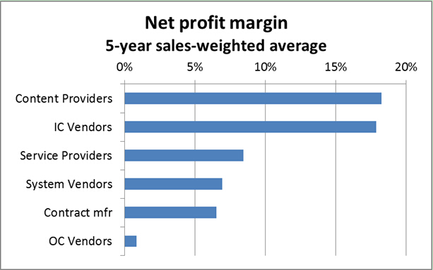 理想情況下,一個新產(chǎn)品的高盈利期應(yīng)該持續(xù)幾年來抵消產(chǎn)品的研發(fā)成本及資助未來的研發(fā)。實際上,一個產(chǎn)品的生命周期中的高盈利時期要不足以彌補過去的研發(fā)費用和和資助未來研發(fā)。如果太多廠商在達到高產(chǎn)出后,開始大量出貨相同產(chǎn)品,價格就會很快降下來了。利潤空間就變小了。一些廠商可能不惜任何代價贏得生意,不管是否盈利。毋庸說,這種無序會導致不持續(xù)發(fā)展,危害產(chǎn)業(yè)的未來。幾個客戶從這個無序的市場中會獲利,如果他們他們押寶在顛覆性技術(shù)研發(fā)和供應(yīng)商身上失敗的話,從長期的觀點看,他們也會后悔今天的做法。