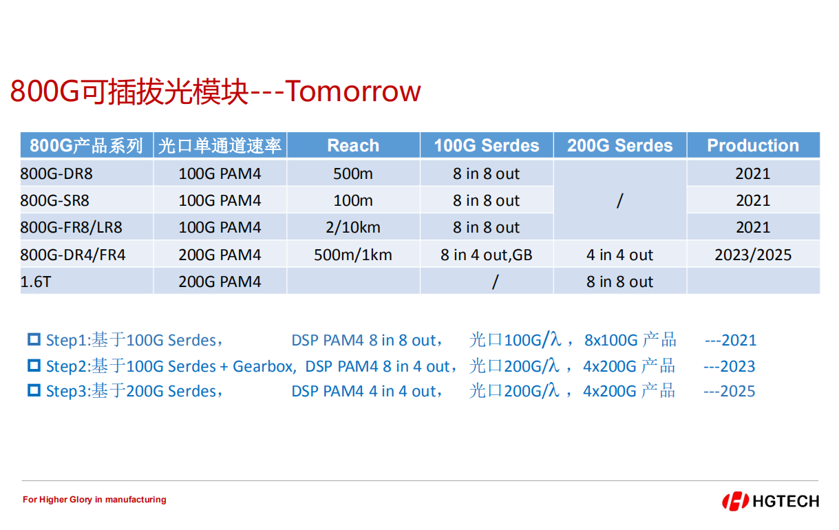 Step3:基于200G Serdes, DSP PAM4 4 in 4 out, 光口200G/l ,4x200G 產(chǎn)品 ---2025推出。