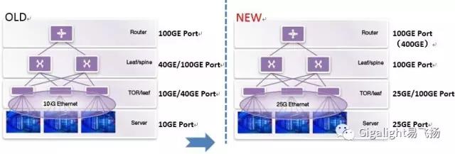 近幾年隨著互聯(lián)網(wǎng)、云計(jì)算和大數(shù)據(jù)快速發(fā)展,加速推動(dòng)了IT基礎(chǔ)設(shè)施數(shù)據(jù)中心的建設(shè),數(shù)據(jù)中心內(nèi)部的以太網(wǎng),新的一輪升級(jí)也在進(jìn)行之中,其中25G以太網(wǎng)備受青睞。