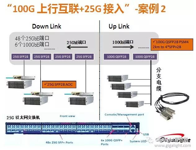 在當(dāng)前的網(wǎng)絡(luò)使用中,25G以太網(wǎng)互聯(lián)應(yīng)用主要體現(xiàn)在以下兩種: