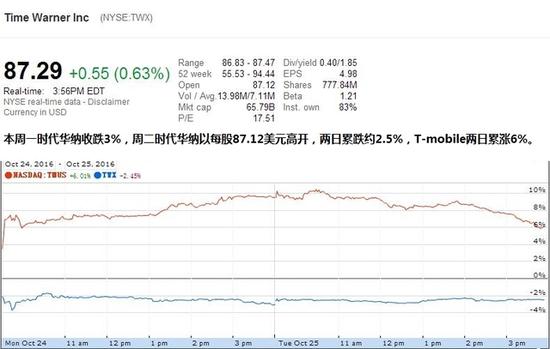 同在周一,白宮表示,是否正式審查AT&T收購將完全由獨立的聯邦政府監(jiān)管人員決定。當日時代華納收跌3%,本周二時代華納以每股87.12美元高開,兩日累跌約2.5%,T-mobile兩日累漲6%。