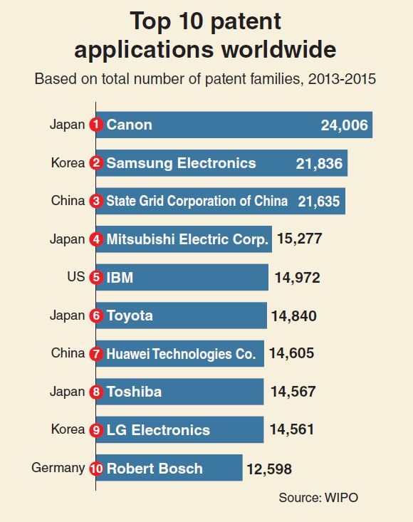 全球企業(yè)專利申請(qǐng)數(shù)量排名