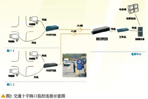 圖2為一交通十字路口監(jiān)控連接示意圖,某市需要在每個(gè)十字路口安裝攝像頭,并且實(shí)時(shí)收集數(shù)據(jù),方便在市交通調(diào)度中心實(shí)時(shí)觀看與監(jiān)控,可以及時(shí)處理道路擁堵、交通繁忙的問(wèn)題;同時(shí)還可以對(duì)交通違規(guī)車輛進(jìn)行監(jiān)控和錄像,對(duì)事后處理提供有效的證據(jù)。該市采用科地公司的LS5300系列PoE光纖交換機(jī),不僅可以很好地解決交通傳輸距離遠(yuǎn)與流量大的問(wèn)題(道路監(jiān)控一般采用高清攝像機(jī),一個(gè)攝像機(jī)的流量都會(huì)達(dá)到10M以上),并且通過(guò)科地的長(zhǎng)距離PoE供電技術(shù),最大供電距離可以達(dá)到150米,也解決了前端攝像機(jī)供電問(wèn)題,減少了很多綜合布線的工序,大大地節(jié)約了成本。