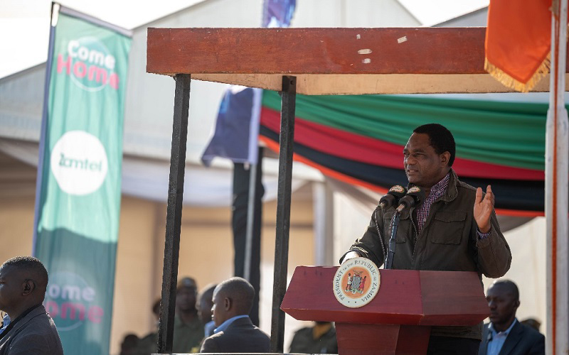贊比亞總統(tǒng)哈凱恩德·希奇萊馬發(fā)表講話