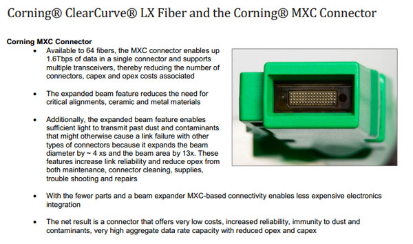 此次創(chuàng)造的新紀(jì)錄使用的也是Intel的Silicon Photonics(硅光子)技術(shù)以及康寧公司的ClearCurve LX光纖,每個ClearCurve LX由64條光纖組成,每條光纖都有25Gbps的帶寬,因此總的帶寬高達(dá)1.6TB/s,二者的技術(shù)有助于解決大型數(shù)據(jù)中心中對長距離、高速度光纖網(wǎng)絡(luò)的需求。