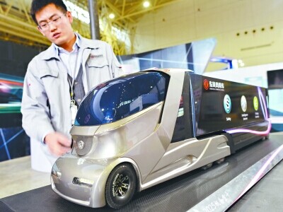 長(zhǎng)1.56米,高0.38米,兩側(cè)各5個(gè)車輪,東風(fēng)商用的一款智能概念重卡模型不需要燃料,靠磁場(chǎng)就可無線充電。