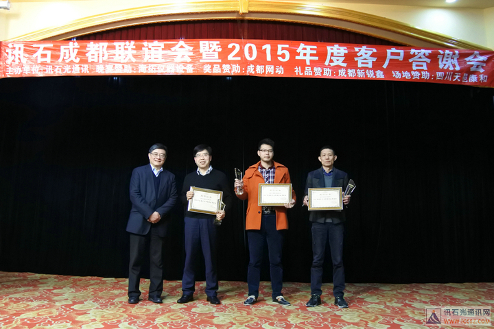 會議最后還頒發(fā)了訊石2015年度突出貢獻獎,分別是長飛光纖光纜股份有限公司、通鼎集團有限公司、飛秒光電科技(西安)有限公司、昂納科技(集團)有限公司、索爾思光電有限公司、Finisar 、深圳市晧辰電子科技有限公司、高意科技、四川光恒通信技術有限公司、吳江市海拓儀器設備有限公司,對一直以來信任與支持訊石的企業(yè)們致以衷心的感謝,也希望在未來的日子里我們能夠繼續(xù)攜手共進,再創(chuàng)輝煌。
