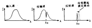 當(dāng)寬帶光在光纖布拉格光柵中傳輸時(shí),產(chǎn)生模式耦合,滿足布拉格條件的光被反射,其中,A為布拉格波長(zhǎng),即后向反射波長(zhǎng); 為光纖模式的有效折射率; 為光柵周期。這樣用不同周期的相位版就可以制作出不同共振波長(zhǎng)的光纖光柵,以滿足實(shí)際需要。