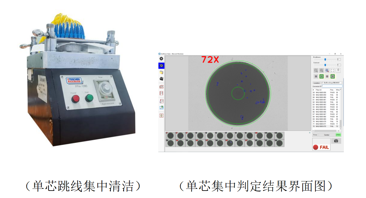ETN5000平臺(tái)專為滿足工廠對(duì)端檢效率的嚴(yán)苛要求而設(shè)計(jì),其檢測(cè)速度在業(yè)界處于領(lǐng)先地位。該平臺(tái)實(shí)現(xiàn)了從自動(dòng)對(duì)焦、自動(dòng)居中、自動(dòng)檢測(cè)、自動(dòng)判定、自動(dòng)保存數(shù)據(jù)、自動(dòng)彈出篩選界面到自動(dòng)移至下一頭光纖,單芯僅需 2 秒完成檢測(cè),MT/MPO 12 芯僅需 7 秒完成檢測(cè),這一速度遠(yuǎn)超人工操作,且與研磨時(shí)間完美銜接,有效提升了整體生產(chǎn)速度和效率。