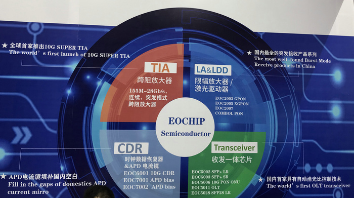 作為國內(nèi)光通信電芯片提供商,億芯源TIA系列以類型全面而著稱,速率涵蓋155M-28G等多個速率,在國內(nèi)市場占有較大的份額。OLT光模塊APD快速電流鏡(Fast Current Mirror)的推出填補(bǔ)了國內(nèi)空白,該電流鏡已經(jīng)實現(xiàn)批量出貨,獲得了廣泛的客戶認(rèn)可度。隨著5G商用和數(shù)據(jù)中心升級,25G速率產(chǎn)品需求快速上升,億芯源25G TIA已經(jīng)實現(xiàn)批量生產(chǎn),靈敏度和過載水平居于全球產(chǎn)業(yè)界領(lǐng)先水平。另外,億芯源的10G PON ONU收發(fā)一體三合一芯片同樣開始進(jìn)行內(nèi)部測試,該產(chǎn)品具有對稱/非對稱光收發(fā)一體芯片,兼容SFF-8472數(shù)字診斷監(jiān)視,LDD輸出功率+6dBm,可以滿足10GPON對稱應(yīng)用條件下功率需求。