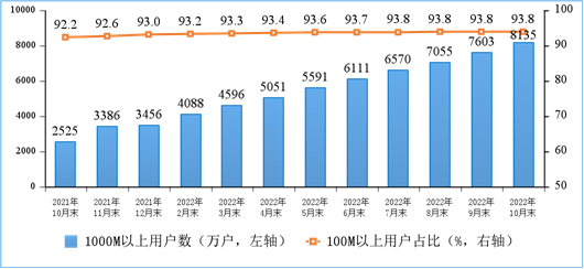 100M速率以上、1000M速率以上的固定互聯(lián)網(wǎng)寬帶接入用戶情況