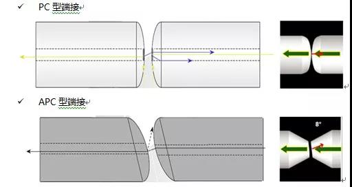 · 因此,我們看到基于PAM4信號的400G SR8光模塊上,為了解決系統(tǒng)回波損耗隱患的一個折中方案趨勢,就是由多模MT/PC研磨形式,調(diào)整為多模MT/APC研磨形式,描述如下:
