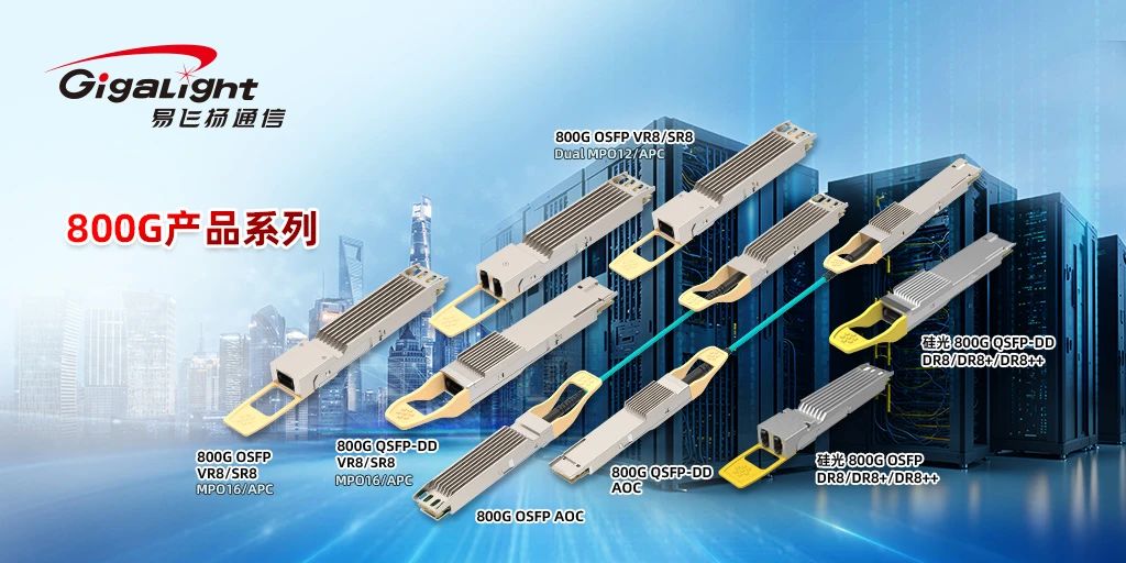 為應(yīng)對(duì)激增的800G光模塊需求,易飛揚(yáng)陸續(xù)推出了基于VCSEL激光器的短距離800G VR8/SR8光模塊/AOC和基于硅光技術(shù)的800G DR8/DR8+/DR8++光模塊。易飛揚(yáng)的硅光模塊和多模VCSEL光模塊構(gòu)成了面向高速AI數(shù)據(jù)中心完整互連解決方案。