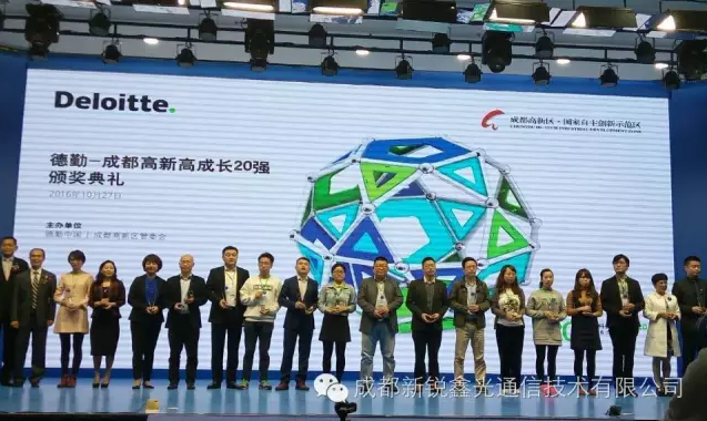 “成都20強”選評活動在歷經(jīng)了三個多月的嚴(yán)格評審和選拔終于產(chǎn)生了,成都新銳鑫光通信技術(shù)有限公司作為參選企業(yè),非常榮幸地被評選為“成都20強”,并出席了此次“成都20強”的頒獎典禮。