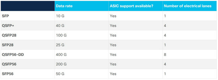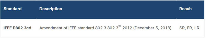 所有產品均符合相關的IEEE標準(見表 3)。一定程度上,它們與其他采用IEEE標準的25G和50G接口實現互操作。每個產品都在Cisco® SFP56端口上經過測試和認證,以保證性能和可靠性。