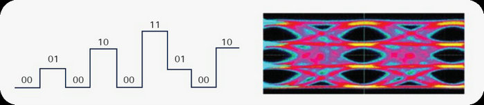 圖4 四級脈沖幅度調制(PAM4)信號對每個符號編碼兩比特,使得數據速率是線路速率的兩倍。
