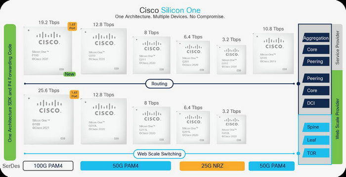 圖5 Cisco Silicon One系列 50G SerDes(藍色)可商用產品型號。