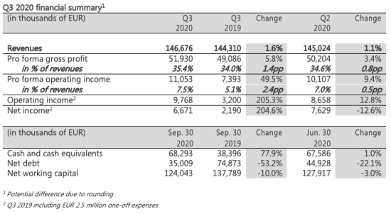ICC訊(編譯:Nina)日前,開放式網(wǎng)絡(luò)解決方案的領(lǐng)先提供商ADVA公布了截至2020年9月30日的2020年第三季度最終財務(wù)業(yè)績。這些結(jié)果是遵循國際財務(wù)報告標準(IFRS)。