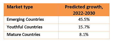Figure 4. Growth forecast by country (% growth 2022-2030). Source: Point Topic.
