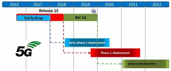 3GPP制定的標(biāo)準(zhǔn)規(guī)范以Release作為版本進(jìn)行管理,平均一到兩年就會完成一個版本的制定。其中R15版本主要內(nèi)容是NSA和SA標(biāo)準(zhǔn),也就是消費(fèi)者端的移動通話問題;大規(guī)模機(jī)器通信(物聯(lián)網(wǎng))、高可靠低延時通信(無人駕駛等應(yīng)用)兩種場景的標(biāo)準(zhǔn)將在R16版本制定,R16版本將在2019年完成。2020年,5G將在全球范圍內(nèi)商用。