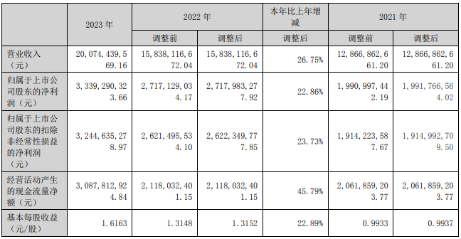 ICC訊 3月16日,中航光電科技股份有限公司(簡(jiǎn)稱“中航光電”或“公司”)發(fā)布2023年年度報(bào)告,2023年實(shí)現(xiàn)營(yíng)業(yè)收入200.74億元,同比增長(zhǎng)26.75%;歸屬于上市公司股東的凈利潤(rùn)33.39億元,同比增長(zhǎng)22.86%。