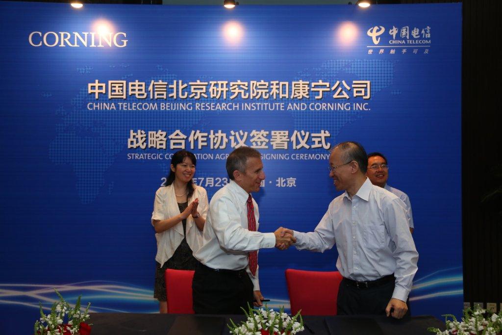 ICCSZ訊 為促進(jìn)超高速光通信網(wǎng)絡(luò)的發(fā)展進(jìn)行共同創(chuàng)新,康寧公司和中國(guó)電信北京研究院近日在北京簽署戰(zhàn)略合作協(xié)議,雙方就共同研究如何推動(dòng)光通信技術(shù),滿足日益增長(zhǎng)的寬帶需求等方面達(dá)成共識(shí)。