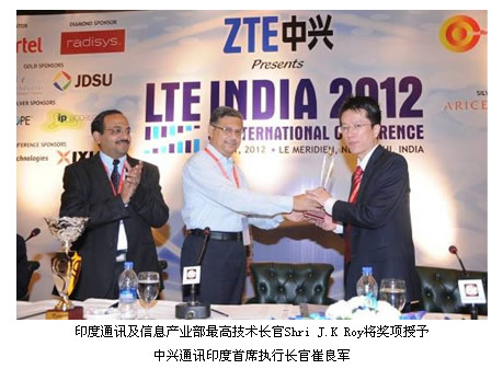 近日,“2012印度LTE 第三次國際會(huì)議”在新德里成功舉辦。中興通訊獲得由印度通訊及信息產(chǎn)業(yè)部頒發(fā)的“印度第一LTE供應(yīng)商”大獎(jiǎng),以表彰中興通訊為印度電信事業(yè)發(fā)展所作出的杰出貢獻(xiàn)。