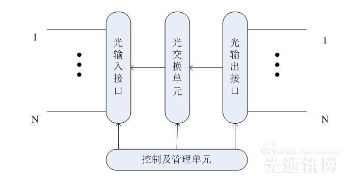 光交換節(jié)點由光輸入接口、光輸出接口、光交換單元、控制及管理單元組成。