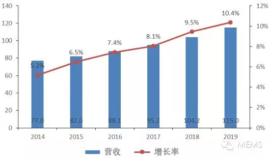 2014-2019年光纖傳感器的市場增速逐步提升,最終年增長率將突破10%。光纖傳感器應(yīng)用于各行各業(yè),如石油、天然氣、汽車、制造業(yè)、消費電子、建筑、航空和船舶等。此外,光纖傳感器也滲透于不同的新應(yīng)用,例如軍事和生物醫(yī)學(xué)傳感器。全球各地的醫(yī)院都期望采用先進(jìn)的醫(yī)療設(shè)備,以提高對病人的診斷、監(jiān)測和治療的水平。